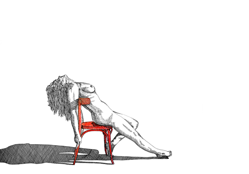Model op de rode stoel AFMETINGEN: 70 X 70 cm. Inkttekening op papier Prijs opvraagbaar Geïnteresseerd? Neem gerust contact op Uw naam Uw e-mailadres Uw bericht 7 + 3 = Indienen